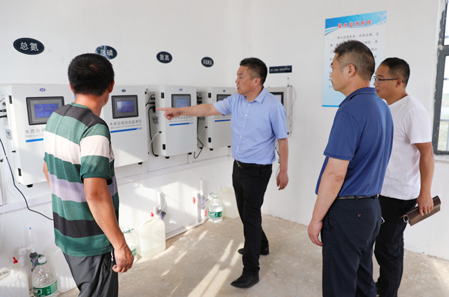 在黃海養(yǎng)殖場,史董認(rèn)真聽取養(yǎng)殖場負(fù)責(zé)同志對尾水處理工藝的介紹,詳細(xì)了解黃海養(yǎng)殖場物聯(lián)網(wǎng)平臺、污水處理流程、水質(zhì)信息采集與監(jiān)測系統(tǒng)等,并實(shí)地考察了尾水處理監(jiān)測室、污水循環(huán)處理設(shè)施、人工濕地生態(tài)系統(tǒng)等,就污水處理工程設(shè)計(jì)施工、污水監(jiān)測指標(biāo)、養(yǎng)殖生產(chǎn)用水等問題與養(yǎng)殖場負(fù)責(zé)同志進(jìn)行了深入的探討與交流。