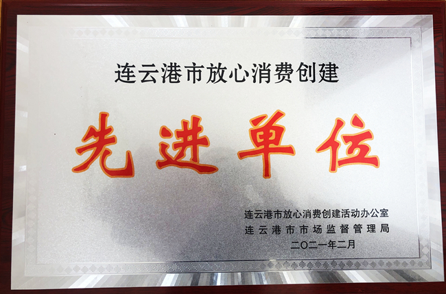 近日,青口投資公司榮獲連云港市2020年度“連云港市放心消費創建先進單位”。