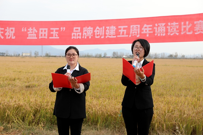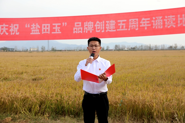? ?金秋十月,稻浪播香,又到一年豐收季。為慶祝“鹽田玉”品牌創(chuàng)建五周年,營造企業(yè)文化氛圍,展現(xiàn)職工群眾健康向上的精神風(fēng)貌,10月25日下午,投資公司于萬畝稻田間舉行慶祝“鹽田玉”品牌創(chuàng)建五周年誦讀比賽。公司黨委委員、副總經(jīng)理周緒祥,各單位黨政工負(fù)責(zé)人、機(jī)關(guān)全體管理人員,大新農(nóng)場條田工,米業(yè)營銷中心生產(chǎn)銷售團(tuán)隊參加活動。
