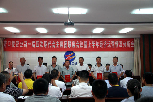 7月18日上午,投資公司召開一屆四次職代會主席團聯席會議暨上半年經濟運營分析會。會議聽取了黨委副書記、副總經理史祥平作關于上半年經濟運營情況分析和下半年經濟工作意見的報告,副總經理周緒祥主持會議。