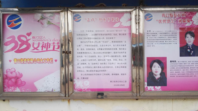 為表彰先進(jìn),樹立典型,激發(fā)女工們爭先創(chuàng)優(yōu)的意識, “三八”節(jié)前夕,青口公司女工委開展了“優(yōu)秀女工”評選活動,對評選出來的優(yōu)秀女工加大了宣傳力度,并增設(shè)“三八”節(jié)櫥窗專欄,大力宣揚公司先進(jìn)女工事跡。