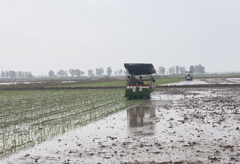 6月4日,大新農(nóng)場搶抓農(nóng)時,全面開始水稻插秧工作,插秧機(jī)來回穿梭作業(yè),田間地頭一派忙碌景象。當(dāng)天,組織插秧機(jī)13臺,秧苗轉(zhuǎn)運(yùn)車6臺次,一天可以完成插秧作業(yè)550余畝。(王 璐)