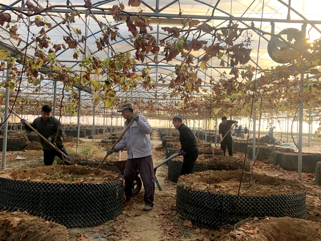 近日,生態種養中心對進入冬季休眠狀態的大棚葡萄進行實施基肥,增強果樹的長勢,促使冬季后葡萄芽的生長和發芽的分化,又可以有效的減少年后公枝的數量,確保來年掛果早且品質好。(嚴鑫)