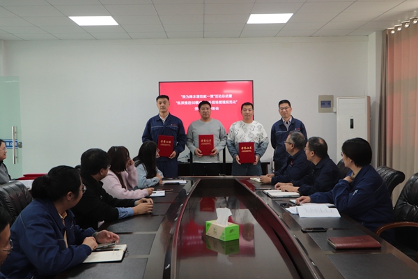 為激勵全體員工進一步干事創(chuàng)業(yè)、奮勇?lián)敚?/span>調(diào)動廣大職工的生產(chǎn)積極性和創(chuàng)造性,10月23日下午,公司召開“我為降本增效獻一策”活動總結暨“縱深推進5S模式、提升現(xiàn)場管理規(guī)范化”勞動競賽表彰會,公司領導班子全體成員、生產(chǎn)班組長參加會議。會議由公司黨支部副書記、工會主席王琪主持。