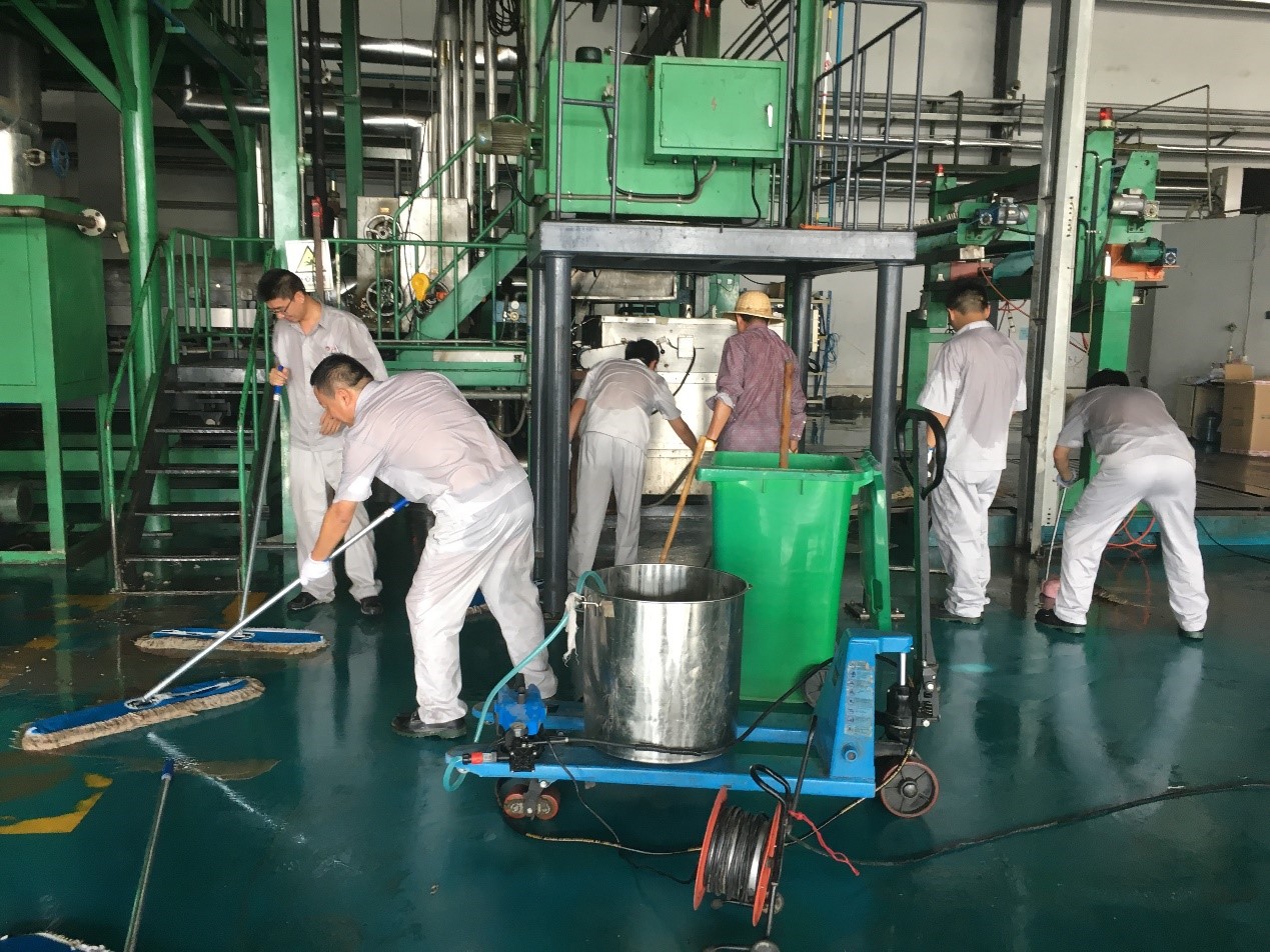 為推進創(chuàng)建全國文明城市、做好公司文明辦公和文明生產(chǎn)工作,7月24日下午,神特新材料員工積極響應(yīng)號召,到一期前紡生產(chǎn)車間展開“大掃除”活動。活動現(xiàn)場熱火朝天,大家齊心協(xié)力,勁往一處使,為創(chuàng)造一期前紡生產(chǎn)車間的美好環(huán)境,貢獻一份“微薄之力”。