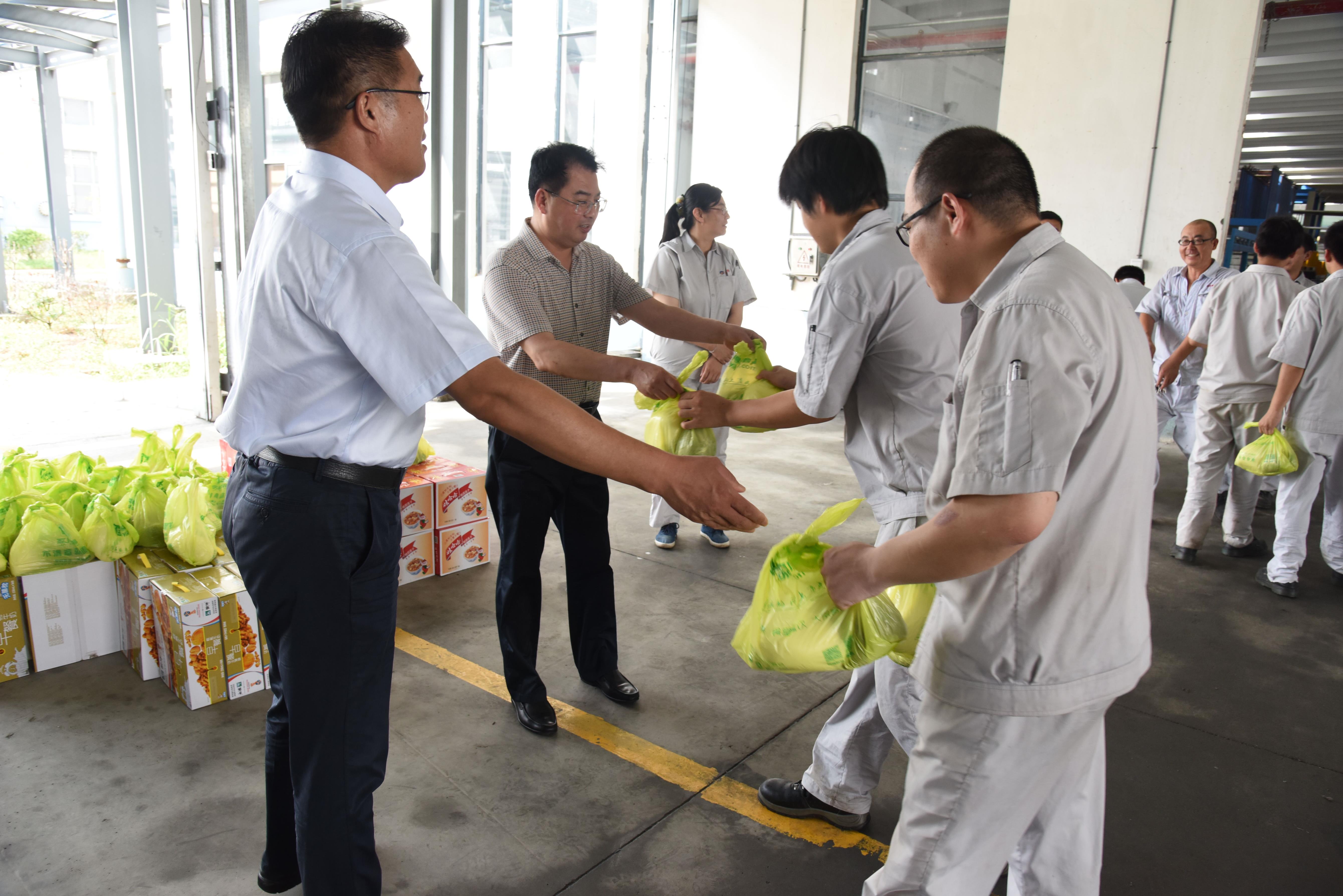 719日下午,集團公司黨委副書記戴鴻鳴、工會主席劉承志一行不顧酷暑高溫,深入到神特公司生產一線,為職工送上了牛奶、綠豆等防暑降溫物品。戴鴻鳴書記詳細詢問了生產經營管理及職工的生產、生活等情況;同時督促神特公司要進一步落實防暑降溫政策,切實維護職工的健康權益。