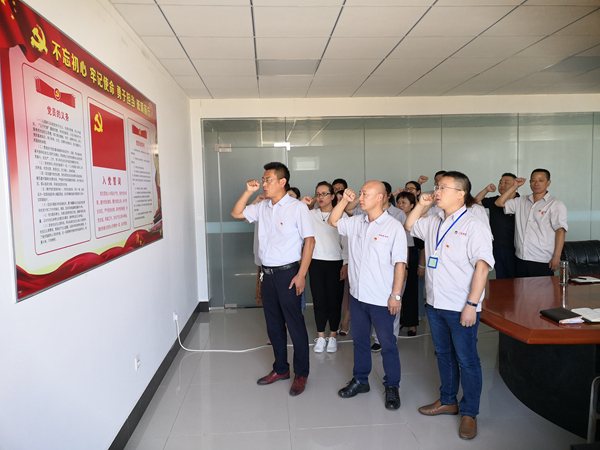 活動中,面對鮮紅的黨旗,公司黨支部副書記袁忠作為領誓人,帶領全體黨員一起高舉右手,再次莊嚴宣誓。鏗鏘恢宏的誓詞,強烈震撼著在場的每一位黨員,一字一句,神圣而豪邁,體現了黨員對中國共產黨的無限忠誠。