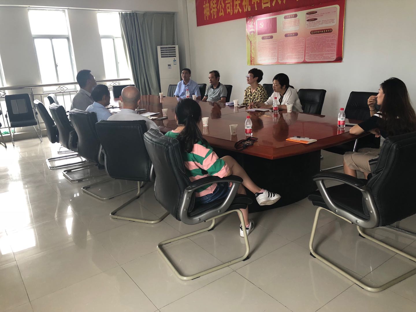 83日上午,應神特公司和奧神新材料公司邀請,灌西投資公司紀委書記、工會主席王宏率組宣、紀檢、工會部門負責人,走進兩個單位進行調研。先后觀摩了奧神新材料公司的黨建陣地和企業展廳,參觀了神特公司的生產車間和新建綜合辦公樓,就陣地建設給與了現場指導。
