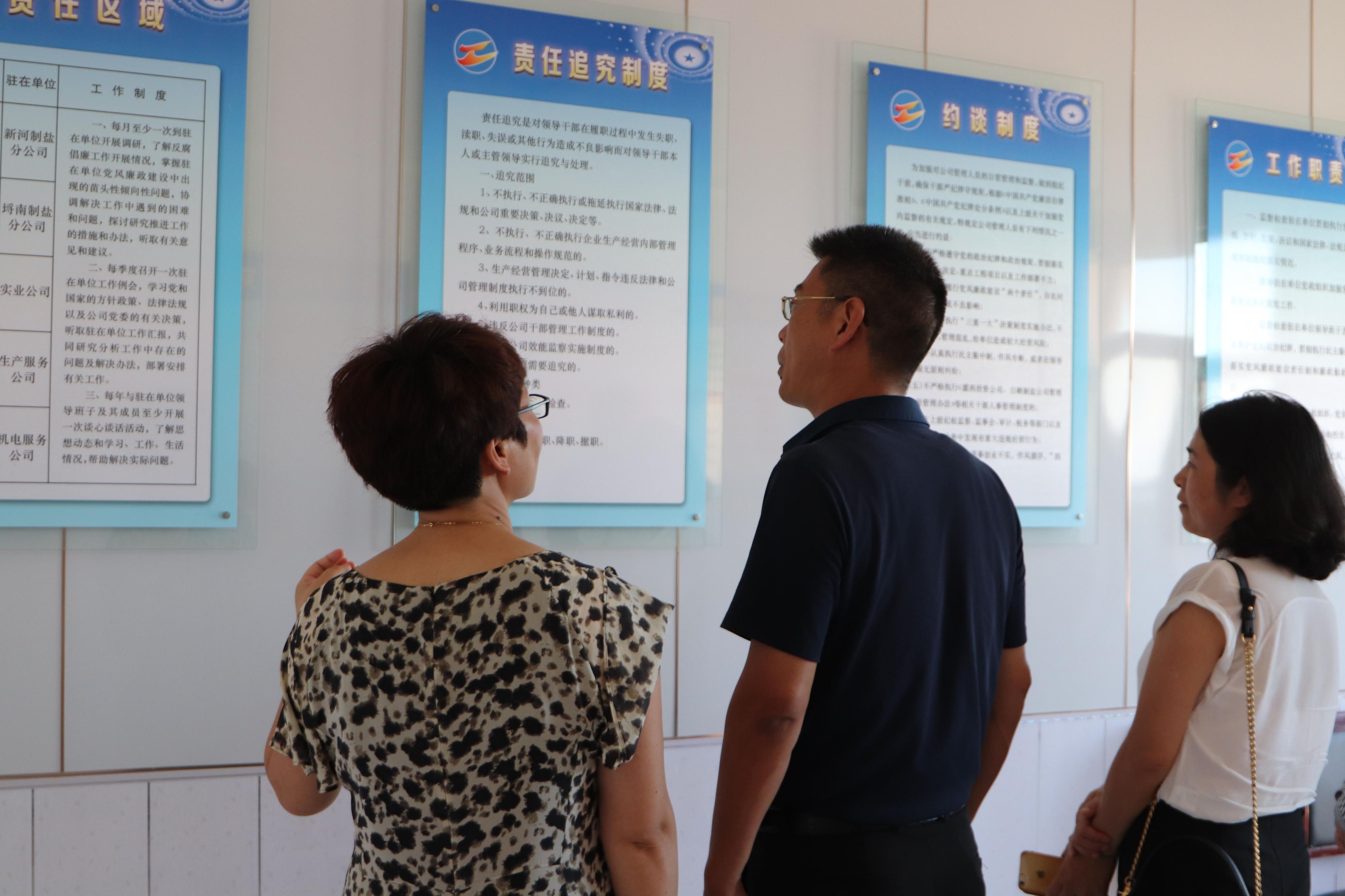 731日下午,神特公司與奧神新材料公司兩家紀檢干部結伴同行,前往灌西投資公司參觀學習。在灌西投資公司紀委書記王宏的陪同下,神特公司和奧神公司的紀檢人員參加了灌西投資公司經營單位片區第二季度黨風廉政發布會,聽取了二季度黨風廉政建設情況,隨后觀摩了新河、埒南、西旺等支部黨建活動室,日曬制鹽片區、灌西經營單位片區兩個派駐基層監察室,查看了紀檢工作臺賬,并一同觀看了廉政微電影《鹽光》。