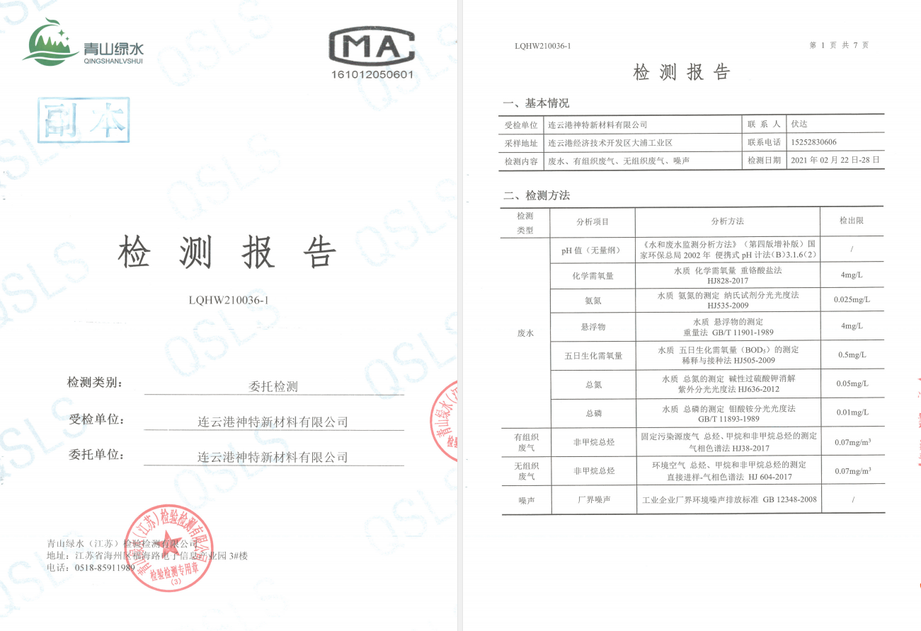 神特公司檢測(cè)報(bào)告公示