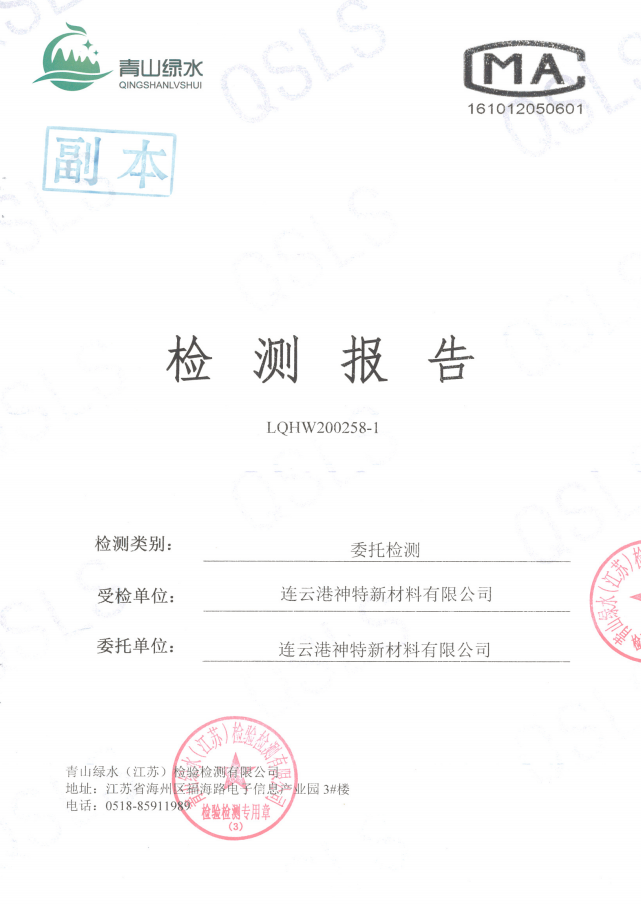 神特公司檢測報告公示