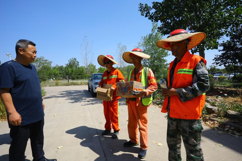 高溫下的熱情,用關(guān)愛撫慰人心。公司工會持續(xù)開展“夏送清涼保安康”活動,先后到先鋒東灘、躍湖路、東方大道、黃海大道等作業(yè)現(xiàn)場,慰問不畏高溫,不懼辛苦奮戰(zhàn)在高溫現(xiàn)場的干部職工,為在高溫天氣下堅守崗位的職工們撐起一片綠蔭。把清涼的飲用水、綠茶和綠豆湯,以及防暑降溫藥品送到職工手中,親切地囑咐職工們做好自我防護(hù),提醒大家在戶外作業(yè)的同時要注意防暑降溫,注重作業(yè)安全和身體健康。