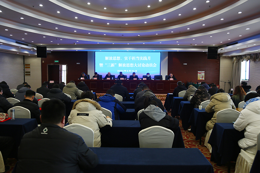 為進(jìn)一步推進(jìn)思想大解放、能力大提升、作風(fēng)大轉(zhuǎn)變、工作大落實(shí)。2月29日下午,投資公司在墟溝金臺(tái)大酒店十樓會(huì)議室,召開(kāi)“解放思想、實(shí)干擔(dān)當(dāng)實(shí)踐月”暨“三新”解放思想大討論動(dòng)員會(huì)。公司領(lǐng)導(dǎo)班子成員,各單位負(fù)責(zé)人,分會(huì)負(fù)責(zé)人,機(jī)關(guān)主管以上管理人員等參加會(huì)議。公司黨委書(shū)記、董事長(zhǎng)、總經(jīng)理王德志出席會(huì)議并講話,會(huì)議由公司常務(wù)副總經(jīng)理卞霄主持。