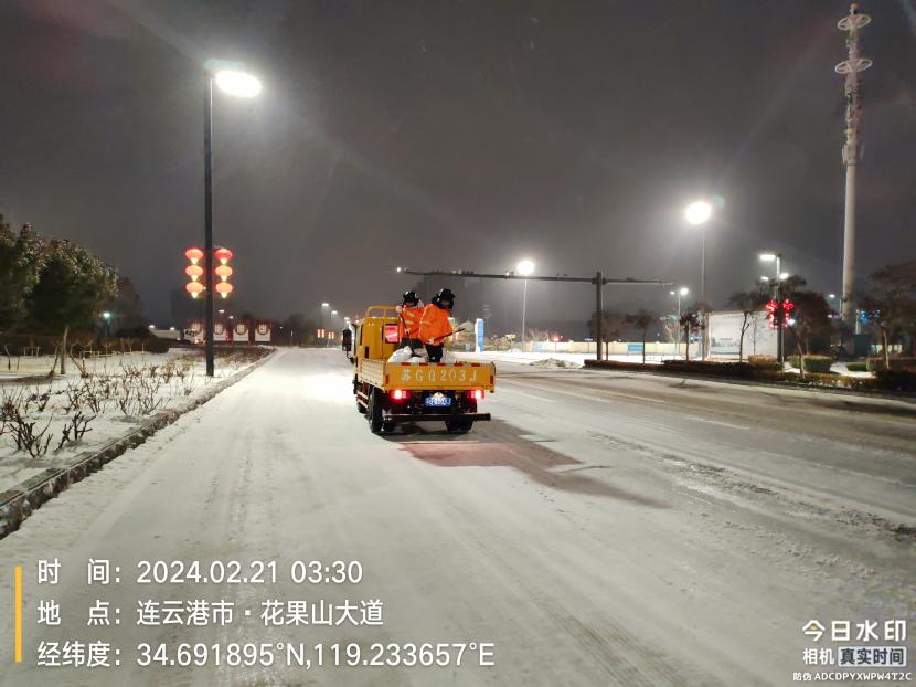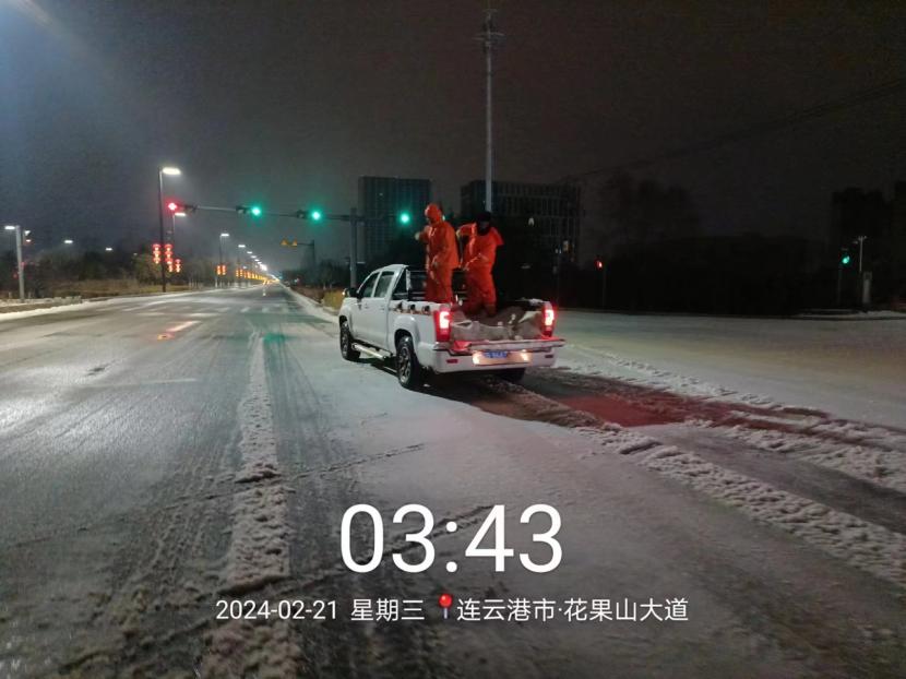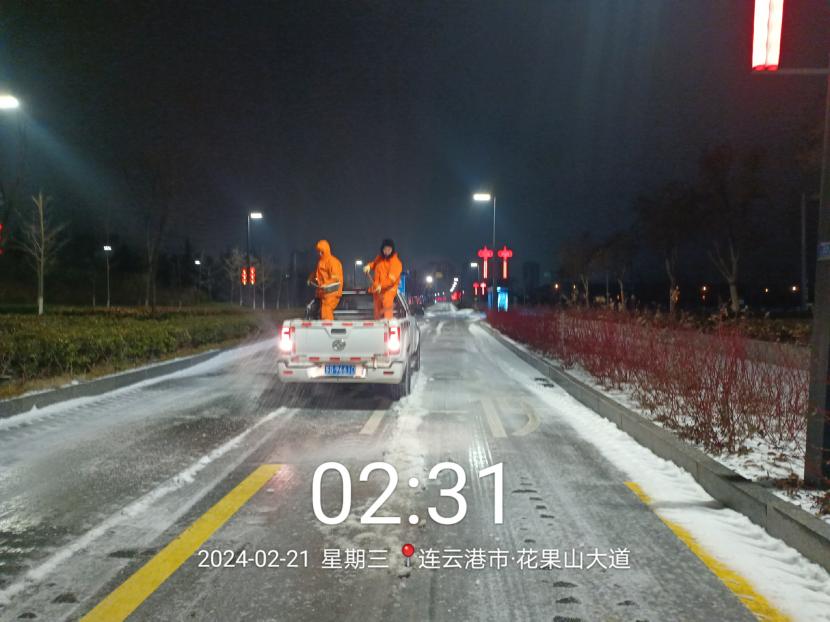 受寒潮影響,2月20日下午,港城普降“冰雪+冰粒”,投資公司第一時間啟動惡劣天氣應急處置預案,道路保潔、市政養(yǎng)護、后勤保障等戰(zhàn)線的干部職工以雪為令,在重點區(qū)域、重點路段、坡道、橋梁、涵洞等結冰路段進行撒鹽融雪融冰作業(yè),全力以赴除冰雪、防事故、護平安,為市民群眾出行一路“護航”。