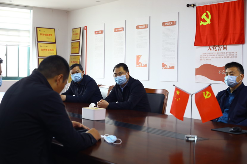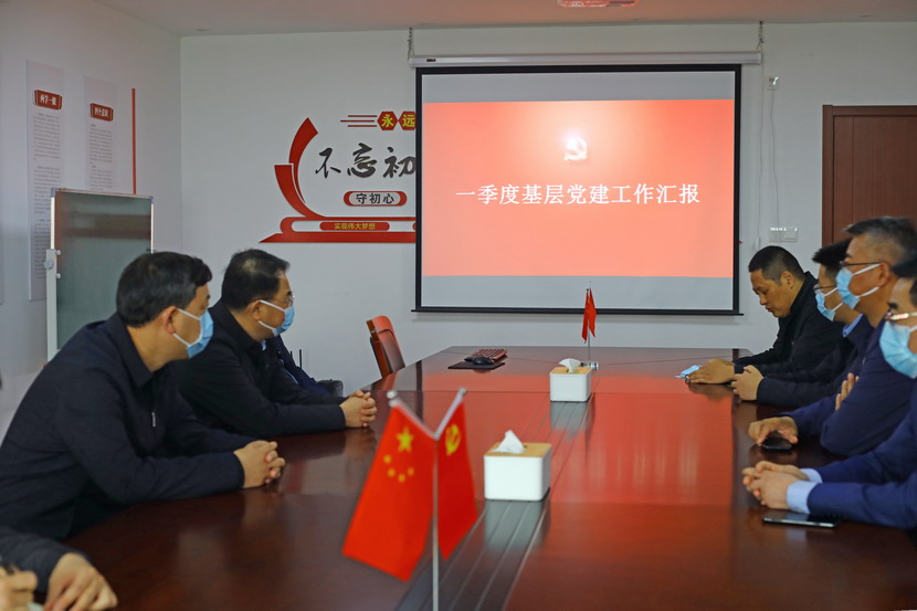 隨后,戴書記一行在會議室聽取投資公司一季度黨建工作匯報,對投資公司工作給予肯定投資公司領導班子面對突如其來的疫情時,做到了應變有力、保障有力、組織有力。在聽取近期生產經營、黨的建設等工作匯報后,戴書記提出點指導意見:一是不折不扣落實上級指示精神。二是毫不動搖抓好疫情防控和復工復產。三是一著不讓推進黨建與工會工作。四是深入細致安全穩定環保工作