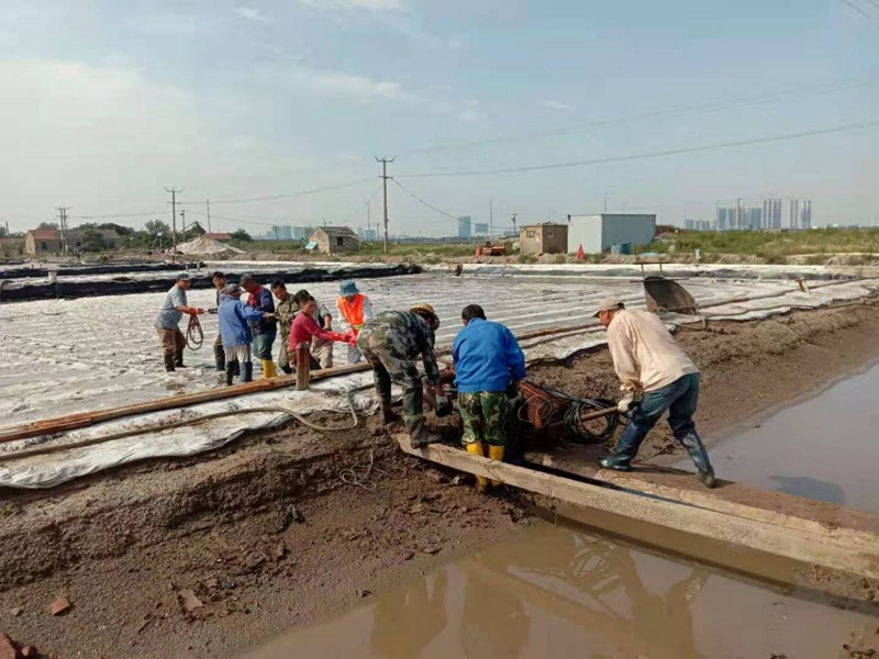 海濱大八組,老鹽工們移動大架,搬運管道,調試機器,開始一年一度的秋季生產。