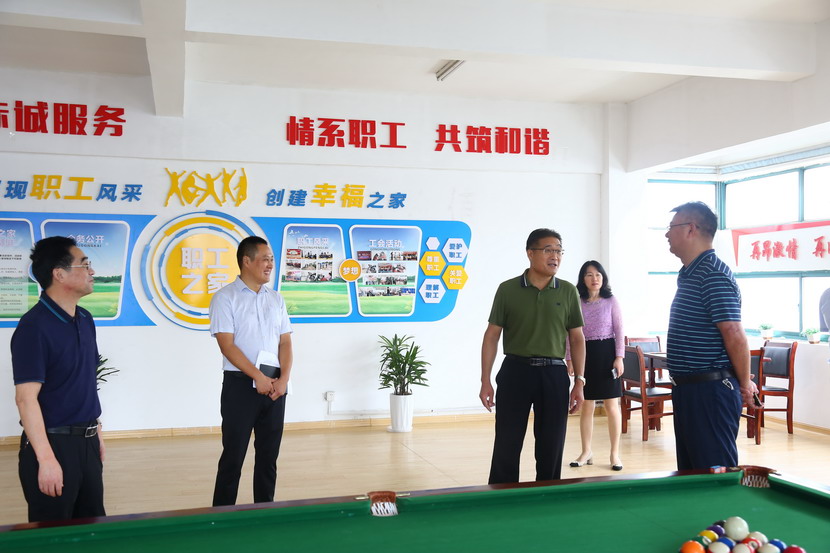 9月2日集團(tuán)公司工會(huì)來(lái)臺(tái)北公司開(kāi)展工會(huì)工作專(zhuān)題調(diào)研。集團(tuán)領(lǐng)導(dǎo)劉承志帶隊(duì),調(diào)研組一行首先來(lái)到臨達(dá)公司,參觀職工建家工作開(kāi)展情況。劉主席對(duì)職工文體活動(dòng)、文體設(shè)施、困難幫扶等一一詢問(wèn),并對(duì)今后發(fā)展作出指導(dǎo)。