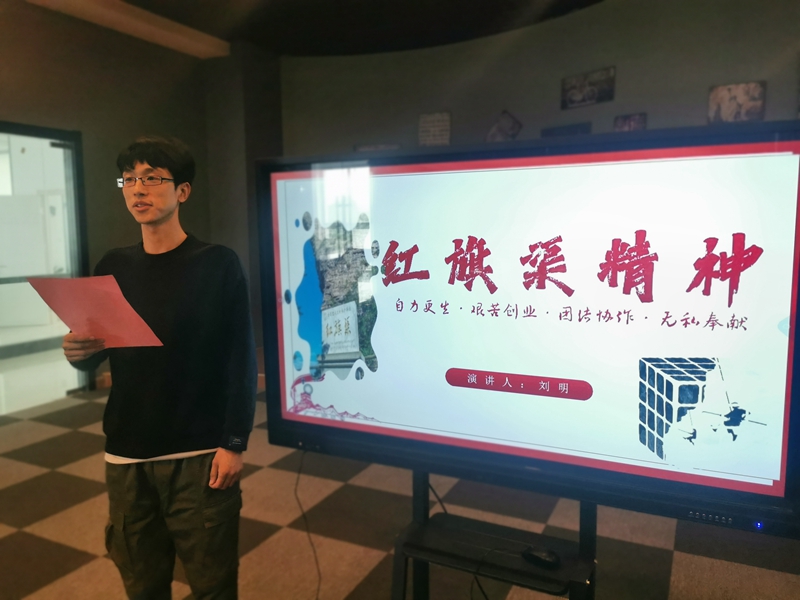 一場演講比賽——“自力更生、艱苦創業、團結協作、無私奉獻”,青年職工走上講臺,述說著勤勞勇敢的30林州人民,苦戰10個春秋,僅僅靠著一錘,一鏟,兩只手,在太行山懸崖峭壁上修成了這全長1500公里的紅旗渠的奮斗故事。