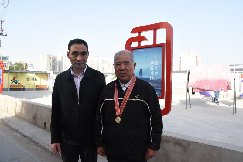 解韻波同志今年83歲,1956年1月參軍,那年19歲,同年6月經過短期高強度培訓,作為無線電通訊兵出國抗美援朝。1959年西藏達賴集團發動叛亂,剛回國不久的解韻波作為無線電技術兵種隨即跟隨大部隊入藏平叛。至今他仍保留著抗美援朝軍功章,入藏平叛軍功章、紀念章等。1962年退伍分配至臺北鹽場工作,1997年退休。今天慰問的時候,在鄰居們的簇擁和艷羨之中,還沒進家門,鄰居們就迫不及待地要求打開“紀念章”一睹風采。紀念獎章掛在老戰士胸前,一眾鄰里夸贊不斷:這份榮譽沉甸甸的。這份榮譽是拿命換來的。這是不得了的榮譽啊。這樣的老兵是我們的寶貝哦,我們要尊敬啊。……就在小區活動廣場上,老戰士與大家暢談起保家衛國光榮的戰斗經歷,烽煙往事歷歷在目。退伍后,不褪軍人本色,幾十年如一日立足家鄉建設,為臺北鹽場奉獻青春,為國家建設貢獻力量。大家對解韻波老戰士的革命戰斗和建設祖國的歷程表示由衷贊嘆和敬佩。