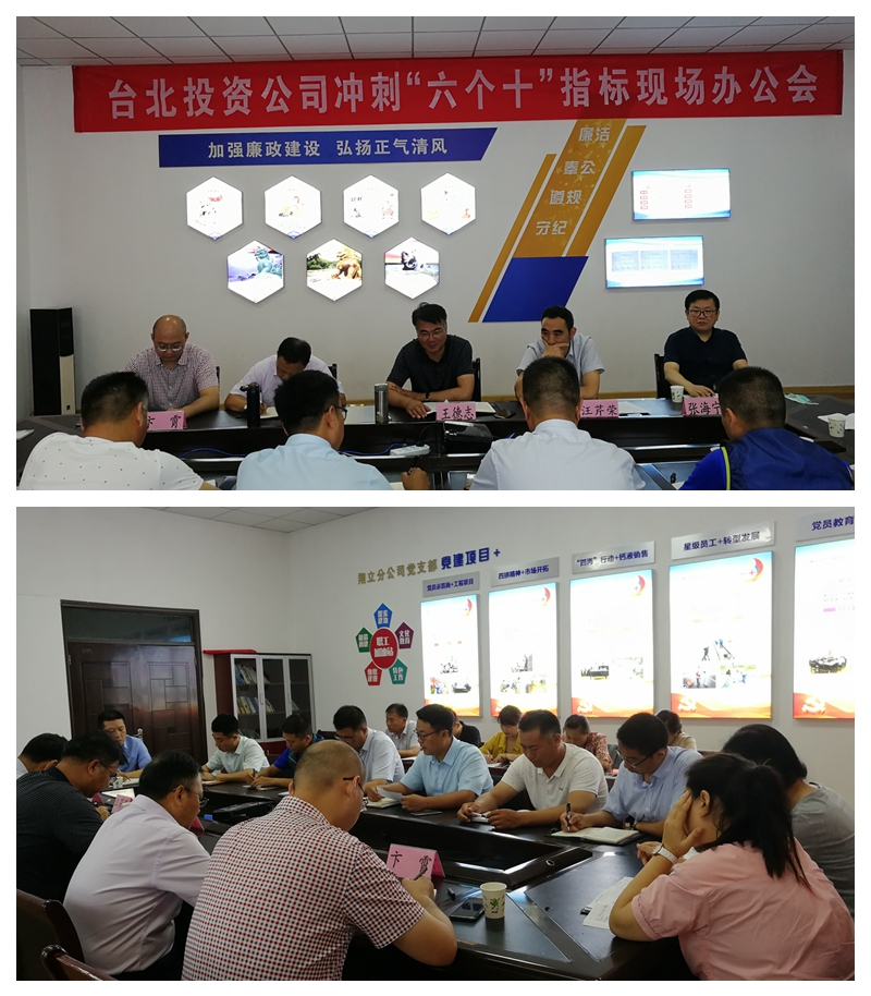 722日上午,投資公司在翔立分公司會議室召開沖刺“六個十”指標現場辦公會第一場。翔立分公司和資源管理分公司班子成員在會上匯報交流圍繞下半年指標任務述見解,談措施,謀思路,一一過堂。相關部門負責人對兩家單位提出的在發展遇到問題和難題進行了現場解答。投資公司領導班子參加了此次會議,并提出了具體要求。