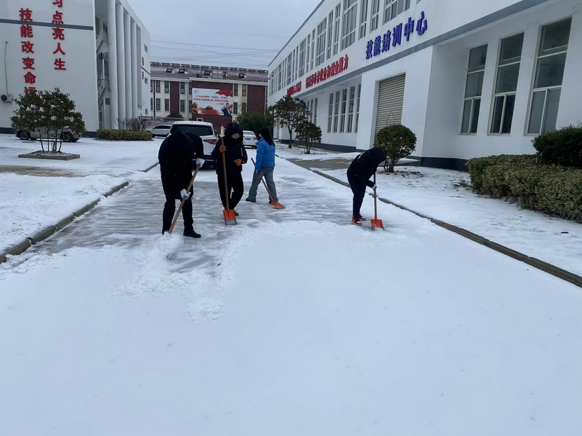 ? ? 男同事拿起鐵锨,女同事則緊隨其后,不甘示弱。大家熱情高漲,鏟雪、推雪、掃雪,干得熱火朝天。鐵鍬與地面的摩擦聲、掃帚的沙沙聲交織成一曲歡快的掃雪歌。在這寒冬之中,他們用汗水和熱情書寫著責任與擔當。經過大家共同努力,道路很快就暢通了,雪也被清除得干干凈凈。