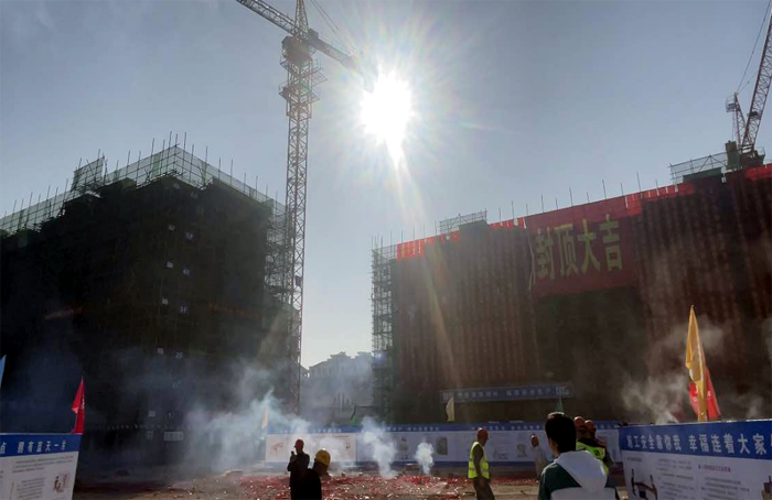 10月24日上午九時許,江蘇金橋鹽化集團棚戶區(qū)改造工程(幸福家園)12#、13#、28#、29#、31#工程終于迎來了主體結(jié)構(gòu)封頂?shù)闹匾獣r刻。
