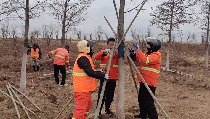 昨日,空氣溫度驟降,伴隨著大雨。綠化分公司立即啟動應急預案,各班組強化轄區內喬木加固支撐防止樹木倒伏、加挖排水溝保證排澇處理等措施。應急維護工作全體人員24小時值待命,確保第一時間將險情排除。