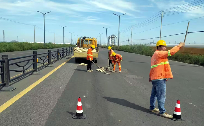 連日來,市政分公司組織人員深入一線,加班加點對賽事路線內(nèi)的市政設(shè)施情況進(jìn)行全面摸底排查,對巡查發(fā)現(xiàn)的市政道路病害,有針對性地制定設(shè)施維修方案,精準(zhǔn)定向整治。截止日前,該公司全體人員加班加點奮戰(zhàn)在一線,有序推進(jìn)各項維修工作進(jìn)程。當(dāng)前,已完成海濱大道、港前大道等多條瀝青路面維修186平方米、道路隔離欄更換維修86米;石化七道、石化三路等路段完成142平方米人行道磚鋪設(shè)、28米路緣石和73個擋車石維修工作;在疏港大道與海濱大道交叉口道邊加裝波形護(hù)欄220米;疏港大道、石化七道、石化三路更換維修雨排水管道168米;更換港前大道、石化區(qū)域內(nèi)鑄鐵檢查井蓋19個。